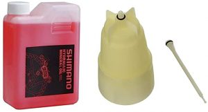 例えばシマノなら「ミネラルオイル」が多いが、各メーカの型式によってオイルが異なる。